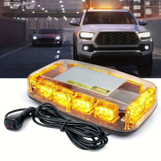 BOLXZHU LED Emergency Light Bar for Cars, Trucks & for Mini Vehicles - 48 LED Amber White Rooftop Mount, Magnetic 12V-24V, Ideal for Nighttime or Icy Road Conditions, Emergency Strobe Light Bar, Without Battery