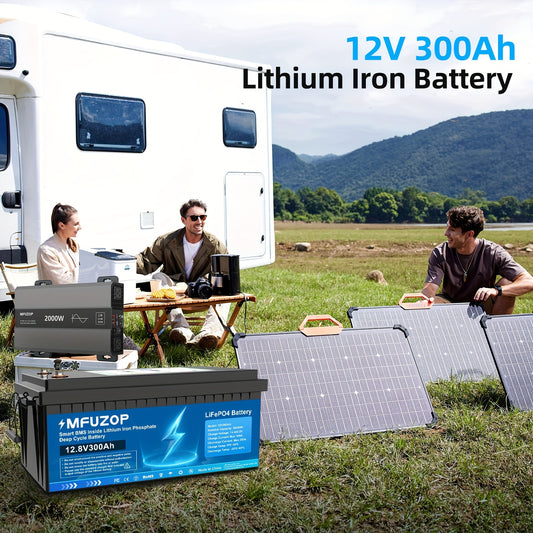 12V 300AH Smart Lithium Iron Phosphate Battery - Rechargeable, Fast Charging, Maintenance-Free, Up to 15,000 Cycles | Ideal for RVs, Camping, Cars, Boats, Golf Carts