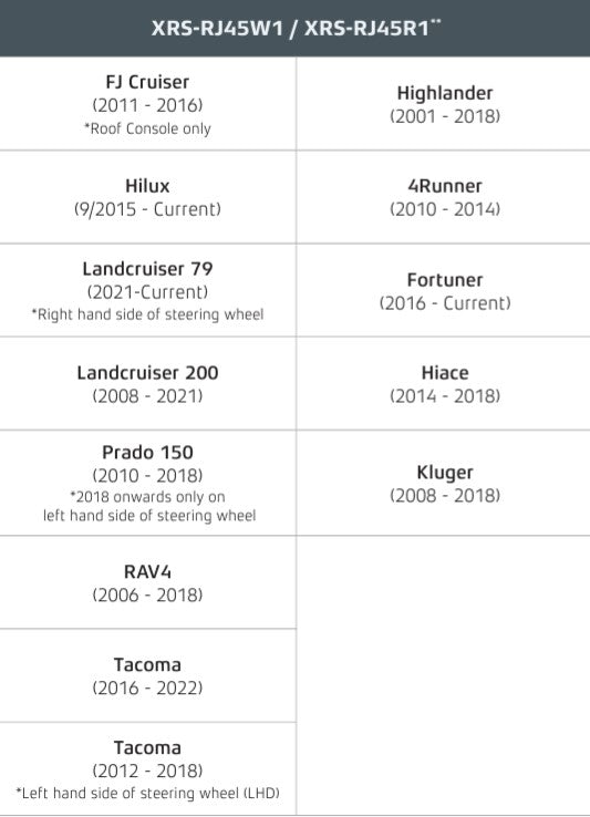 The XRS-RJ45W1 pass-through adaptor allows for an XRS™ Connect controller microphone to be integrated directly into a range of blank OEM switch locations, providing a neat and professional finish.